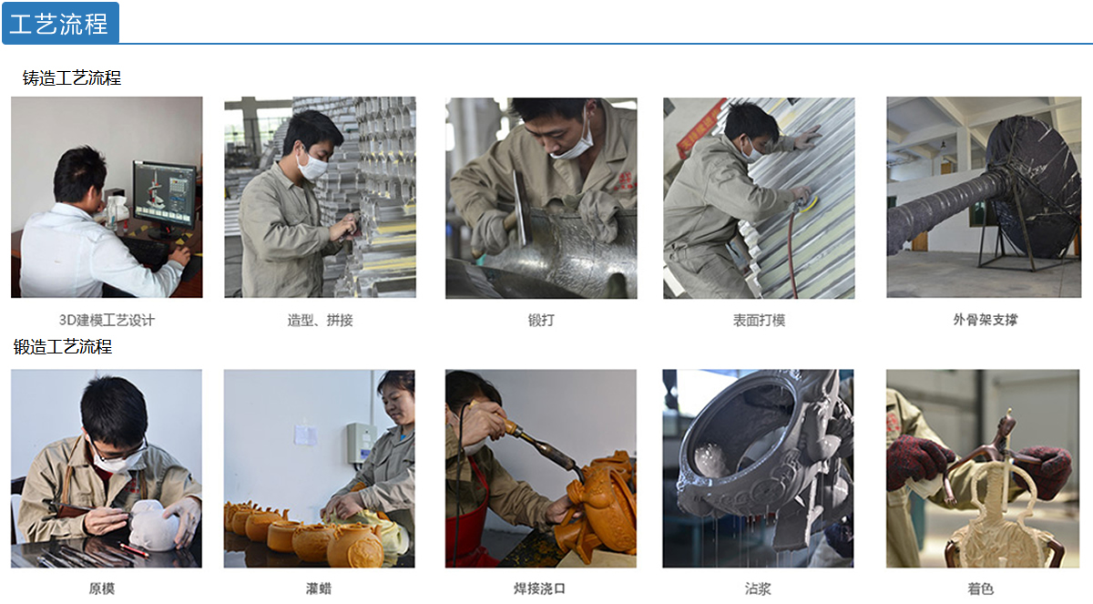 福州藝塑坊雕塑有限公司是一家集設計、制作、安裝、售后服務為一體的專業化雕塑藝術公司,本公司致力于空間雕塑制作城市雕塑,園林景觀雕塑,酒店娛樂場所雕塑、藝術擺件、校園主題雕塑、文化墻浮雕等,主要產品有:鑄銅/鍛銅雕塑、玻璃鋼雕塑、不銹鋼雕塑、裝飾浮雕、名人肖像雕塑、藝術砂巖、卡通動漫雕塑、動物雕塑、假山塑石及各類園林景觀雕塑,我們的設計制作團隊主要由雕塑專業的精英組成,公司的設計師、雕塑師、工藝美術師、開模師都有精湛的技藝,較高的素質,公司在設計上大膽構思,別出心裁,技藝上精雕細琢,精益求精,我們秉承“立誠守信、言真行實”的經營理念,精誠合作、不懈努力、力求創新、以質取勝、更好的將雕塑藝術融入現代生活是我們的宗旨! 公司宗旨:精雕細琢、精益求精、展示完美的雕塑藝術。>>更多